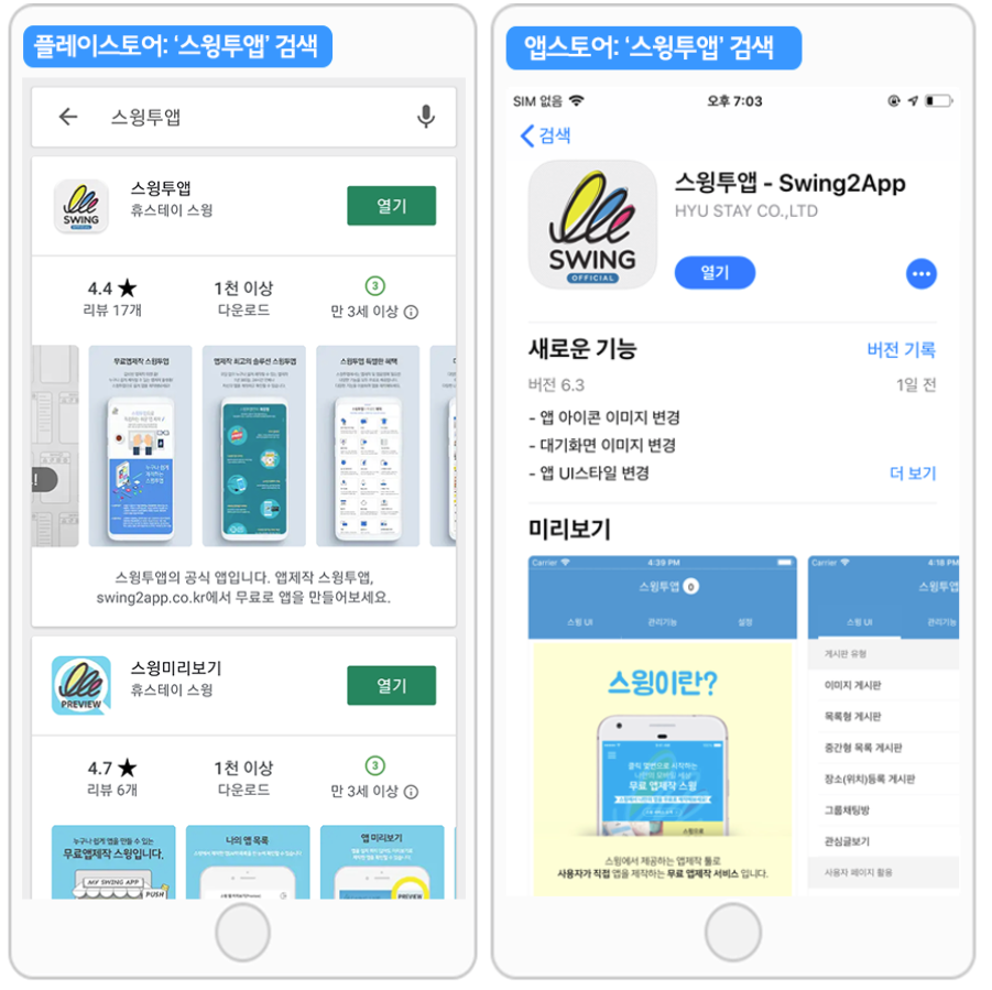 1.앱스토어, 플레이스토어 [스윙투앱] 앱 다운받기